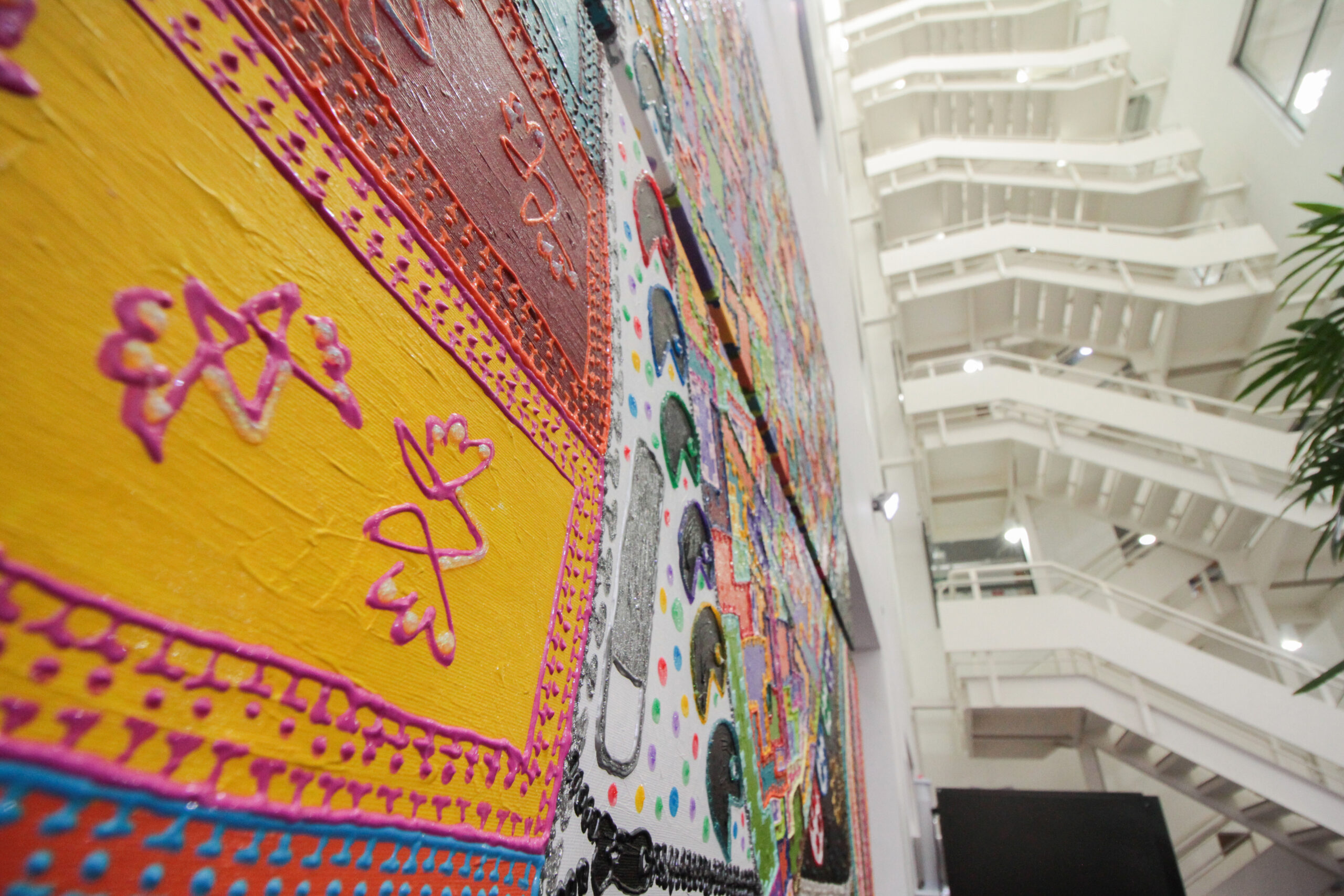 Obras da artista foram escolhidas como fundo de palco de filmagem para a apresentação dos baristas no círcuito do festival do café em São Paulo, no @café174, Rua Alvares Penteado 151, Centro.