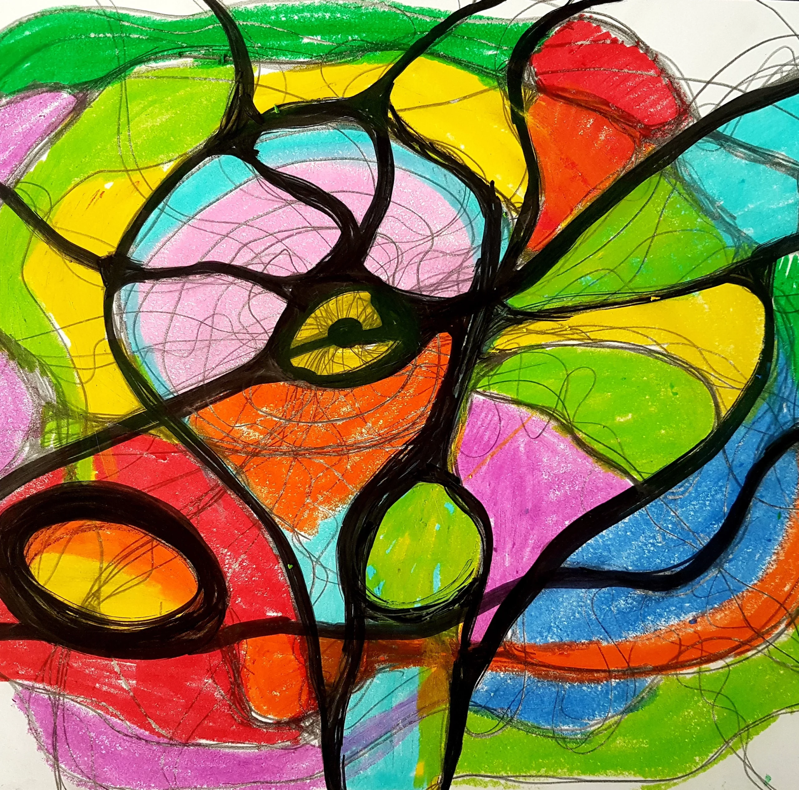 Stylo noir e crayons gel sobre papel Canson A4