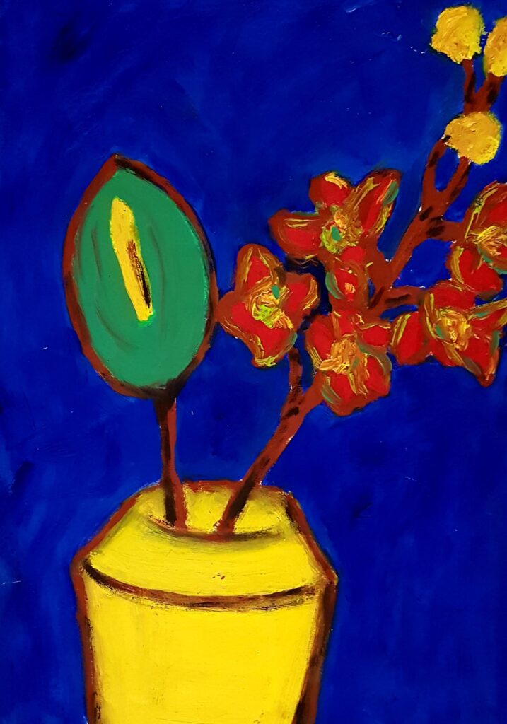 Stylo noir e colorés, tinta óleo sobre papel tela A32022